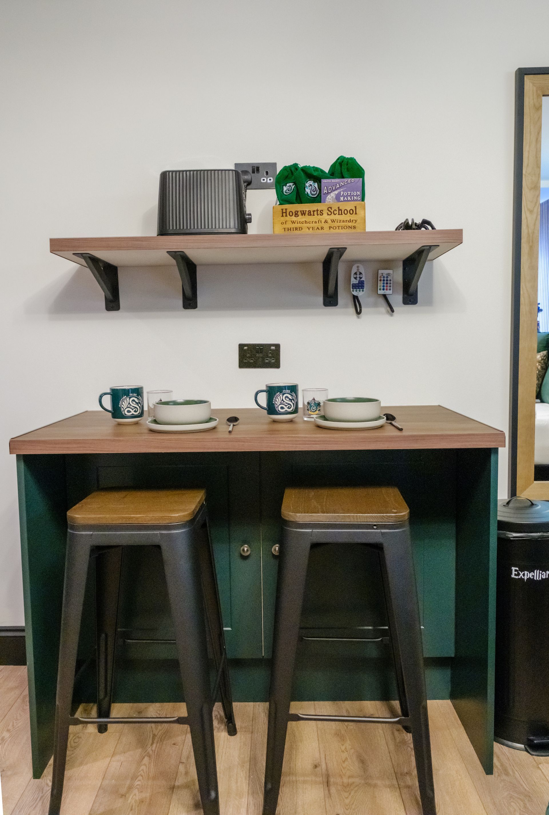 The room sleeps two guests comfortably in a luxurious double ottoman bed, with a sofa bed available for a child (under teen age) that will be prepared on arrival for a third guest. Hidden surprises are scattered throughout the room, bringing a touch of wizarding magic to your stay.